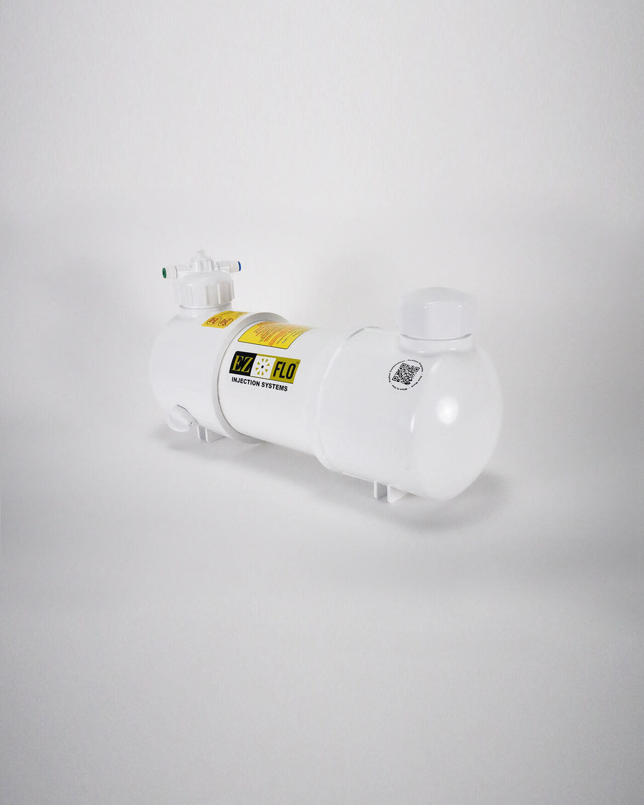EZ-FLO is unlike other differential pressure systems because it uses dynamic suspension and proprietary fluid flow technology. This patented technology ensures the incoming water displaces the fertiliser but does not dilute it in the tank. The concentration of fertiliser output is constant over the whole cycle.