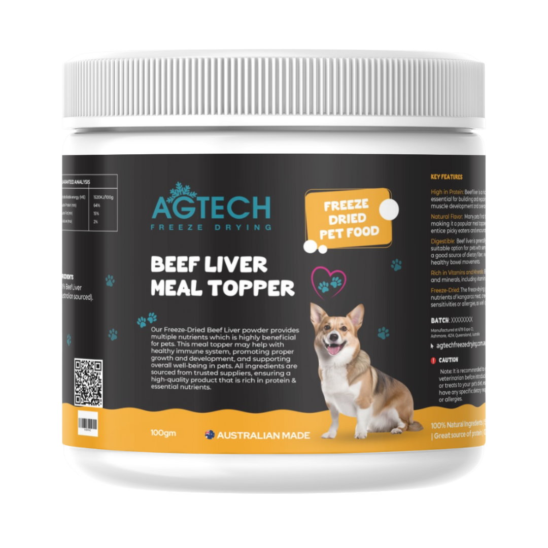 Made from 100% human-grade beef liver, our Freeze-Dried Beef Liver Meal Topper is a nutrient-dense supplement rich in vitamins and minerals that support overall health, energy, and vitality. Freeze-dried to preserve natural flavours and nutrients, this topper is free from grains, additives, and preservatives.