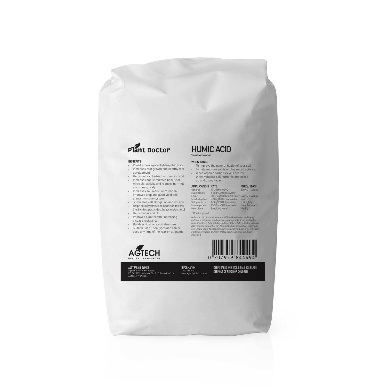 If your soil is tired, depleted, or struggling to retain nutrients, this is your natural fix. Plant Doctor’s Humic Acid 80% Powder is a 99% water-soluble humate made from premium Leonardite, one of the richest known sources of humic acids. It works below the surface to unlock nutrients, detox harmful residues, and restore soil health by feeding beneficial microbes and improving structure. Whether you're growing lush lawns, thriving veggie patches, or managing broadacre farmland, this humic acid powder will rebuild fertility, balance pH, and enhance fertiliser performance, naturally.